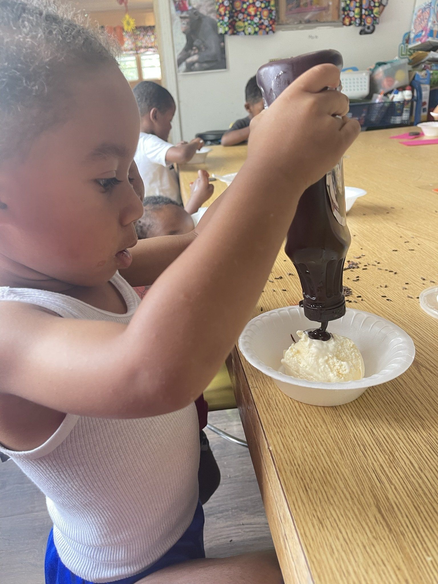 Little Kid Doing Pizza Cardboard — Knoxville, TN — Marcia’s Learning Center